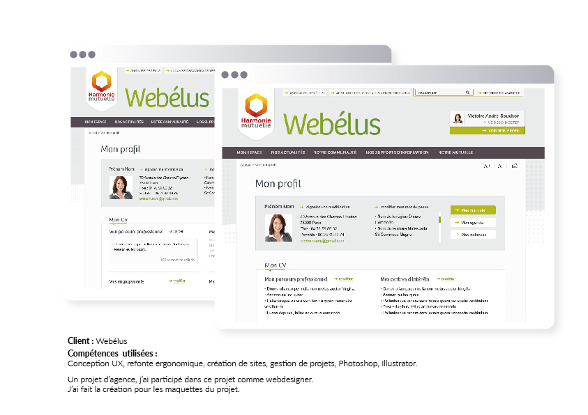 j'ai réalisé les pages de profile pour Webélus.